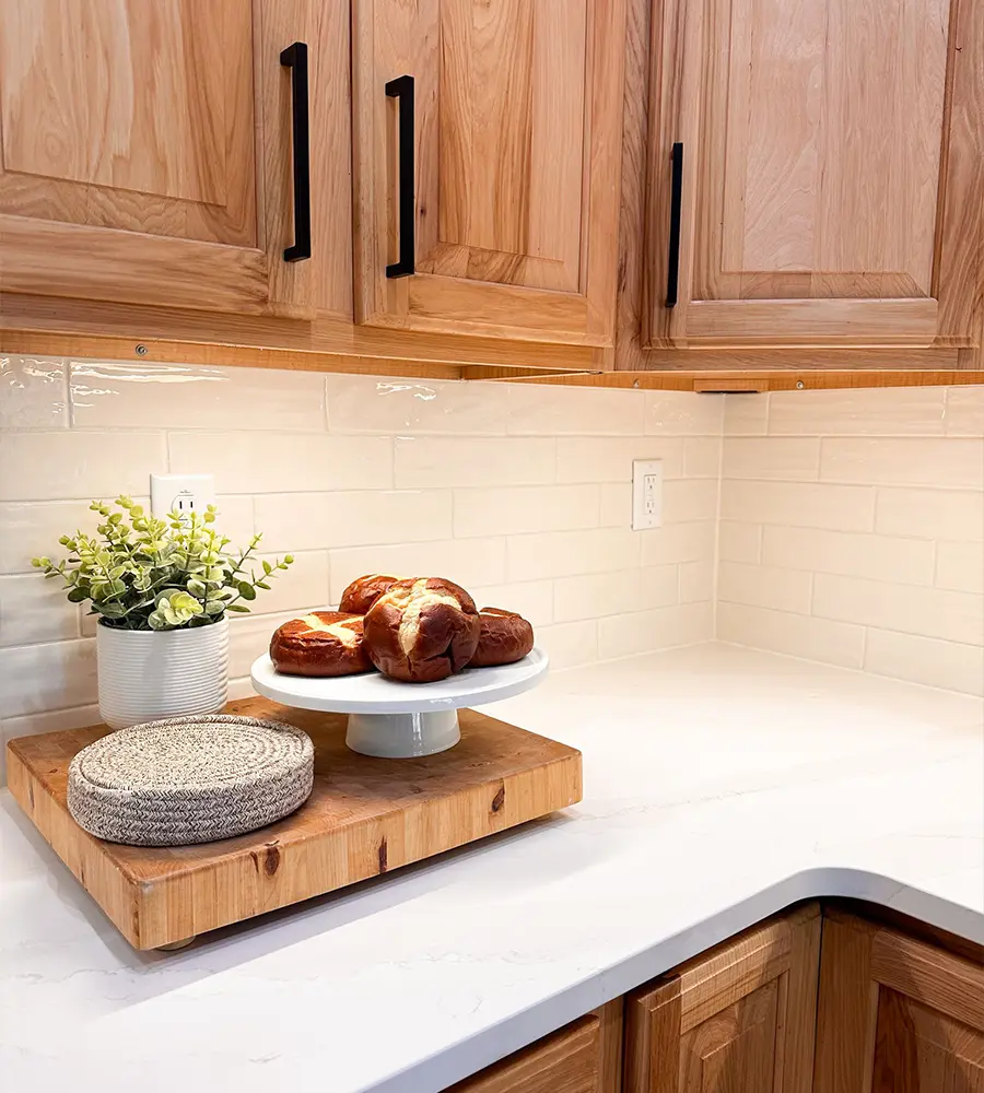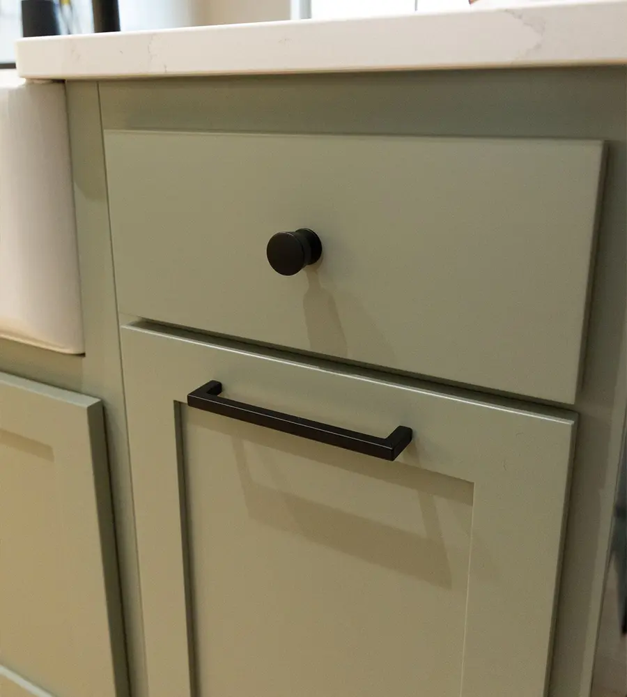 Although they loved their cabinets, the pulls, knobs, and hinges were old and the cabinets couldn’t close right.
