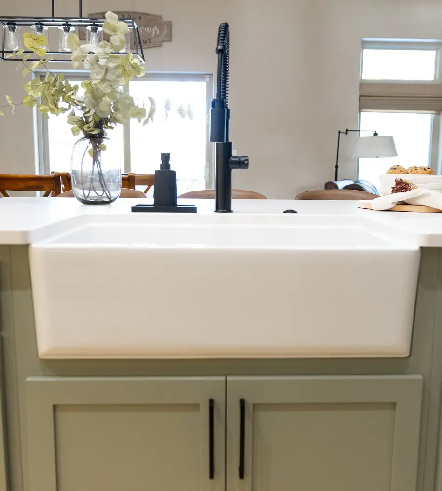 In both the kitchen and laundry room, the sinks were old, stained, and even rusted. They needed an upgrade.